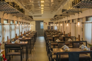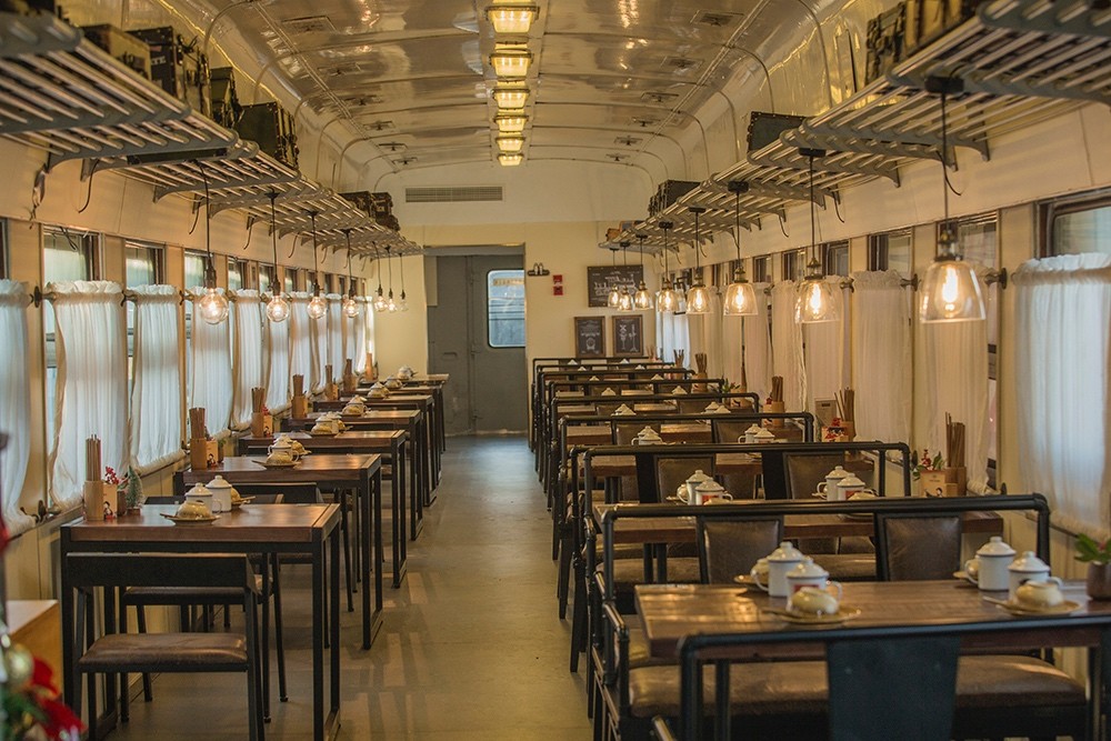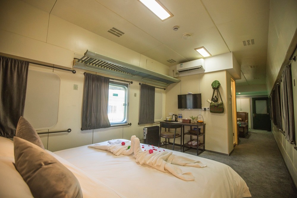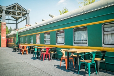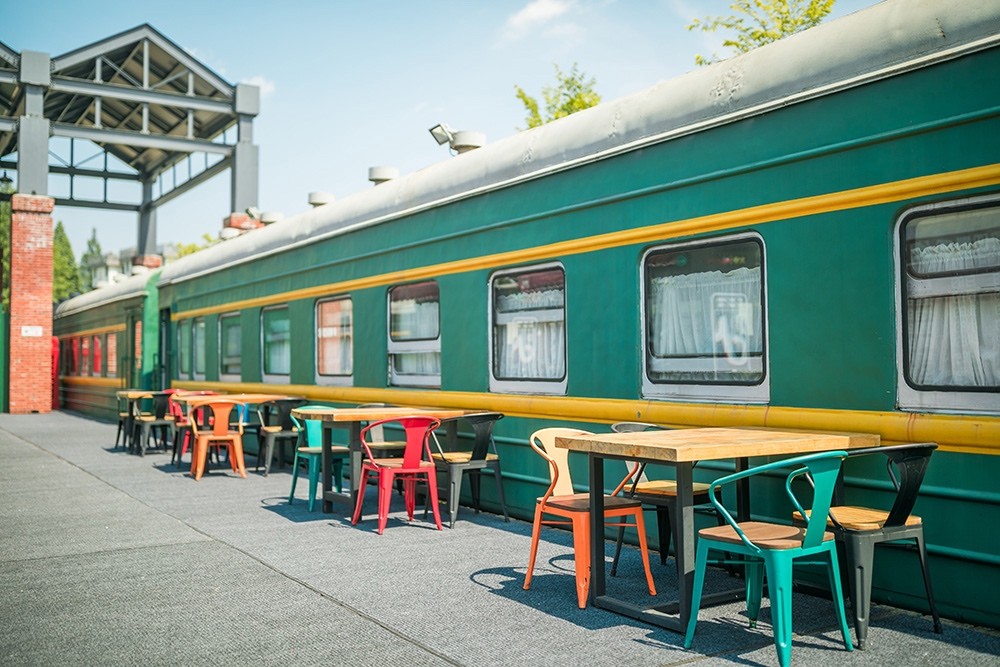 東方紅火車主題酒店由3列27節綠皮火車車廂組成,來自長春、沈陽等北方城市的綠皮火車經過著名設計師的改造已經成了國內為數不多的火車主題酒店,一共73間火車客房和1個火車餐廳。酒店以橫鋼50年代金千鐵路舊址作為切入點,利用火車枕木鋪設人行游步道,結合溫泉,形成了真正的VIP溫泉客房。走進綠皮火車,你會發現原先的車廂已經被很好地設計成了宜居的客房,書桌、衛生間、電視、暖氣一應俱全,還能在墻上看到年代感的背包/水壺/帽子的裝飾。