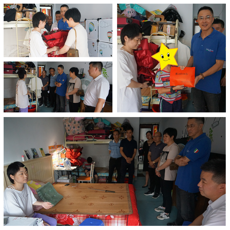 7月10日,正值盛夏高溫天氣,集團領導周小紅、張明發等一早驅車40多公里趕往尖山員工宿舍,看望慰問員工張秋月及其家屬,送去了鮮花和5萬元的關愛基金,也送去了集團公司對基層員工的祝福。