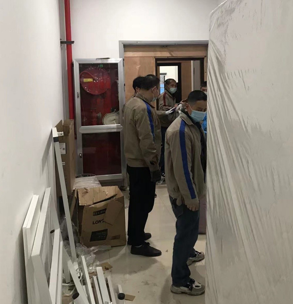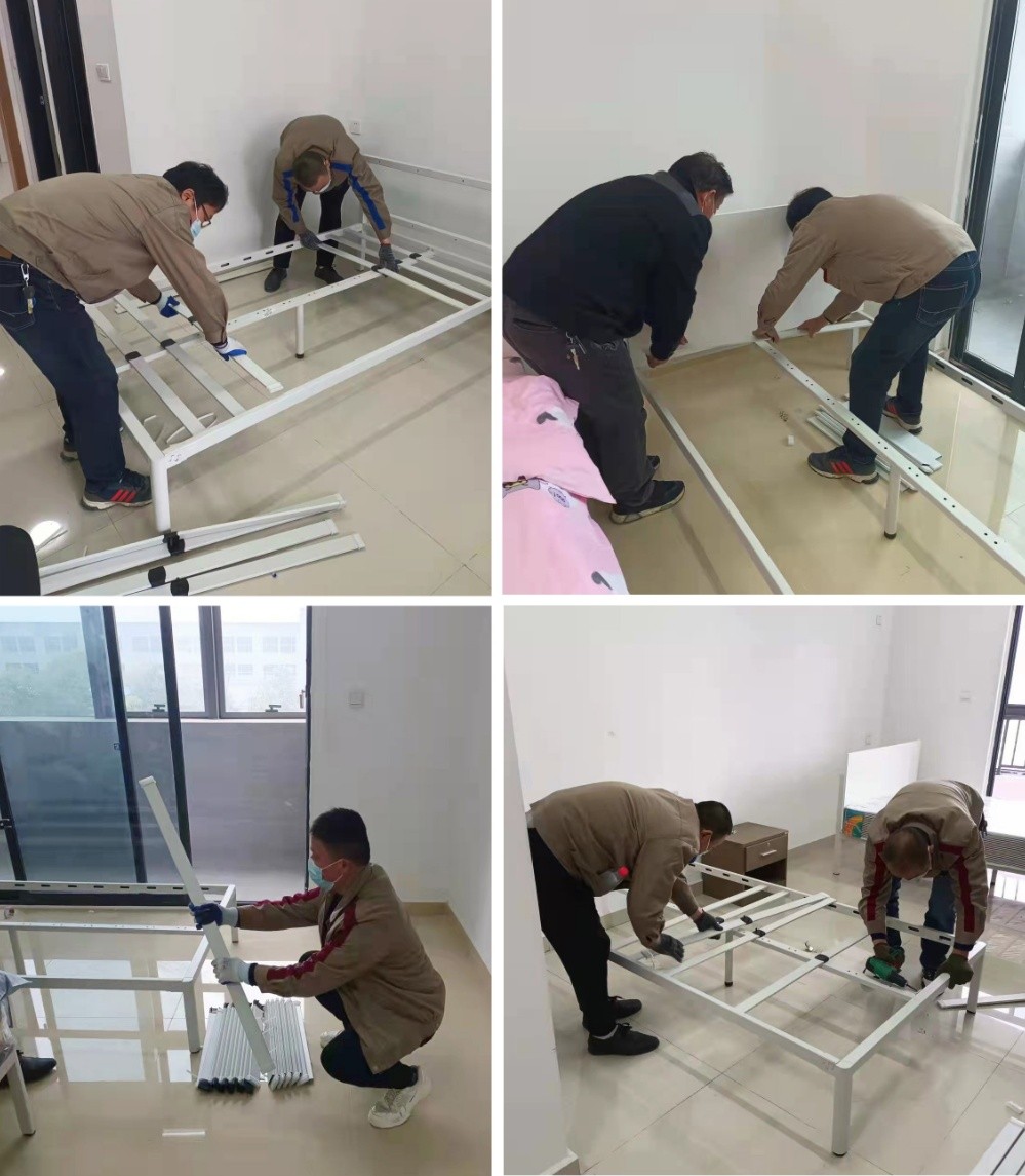 9點(diǎn)多,志愿者們到達(dá)第一個(gè)增援點(diǎn),立即投入“戰(zhàn)斗”,先安裝兩個(gè)樓層的床位,之后立馬又調(diào)至第二個(gè)增援點(diǎn),那里有十二個(gè)樓層,每層29個(gè)房間,志愿者們自己搬運(yùn)床架組件,自己組裝,跑上跑下,爭(zhēng)分奪秒,為的是趕在隔離點(diǎn)人員到來之前全部安裝完畢。大家一刻不停,與時(shí)間賽跑,使勁趕進(jìn)度。期間還安裝房間鋼架椅子,清理房間里的垃圾。