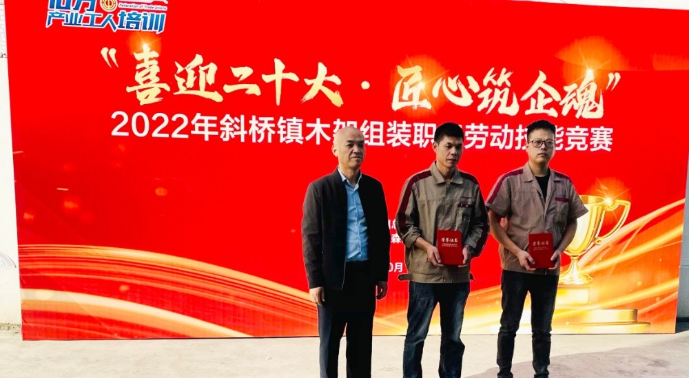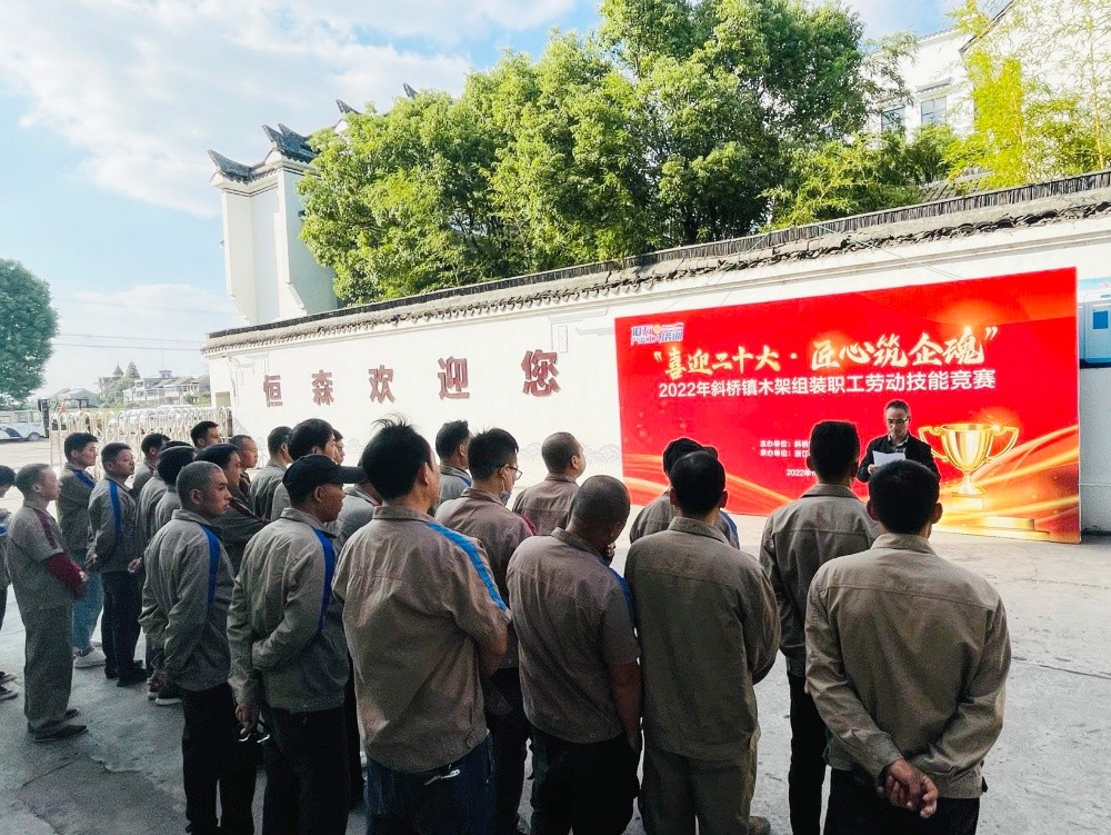為提升職工勞動技能水平,形成創先爭優、比學趕超的競爭氛圍,一場以“喜迎二十大 匠心筑企魂”為主題的2022年斜橋鎮木架組裝勞動技能競賽在恒森公司組裝車間拉開戰幕,來自組裝一車間、二車間和打樣車間的26名技能型員工報名參賽。