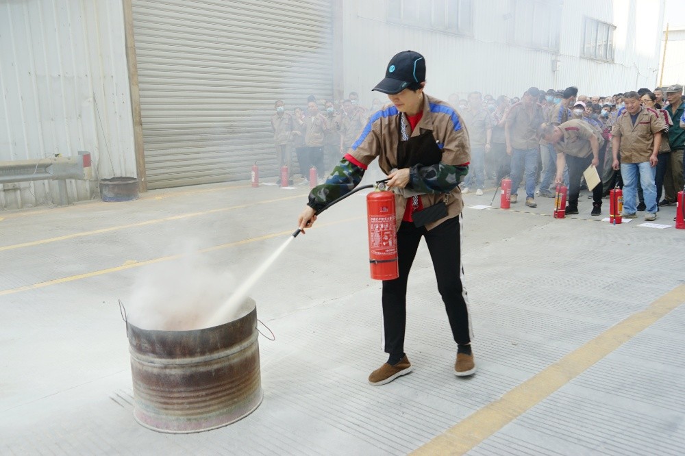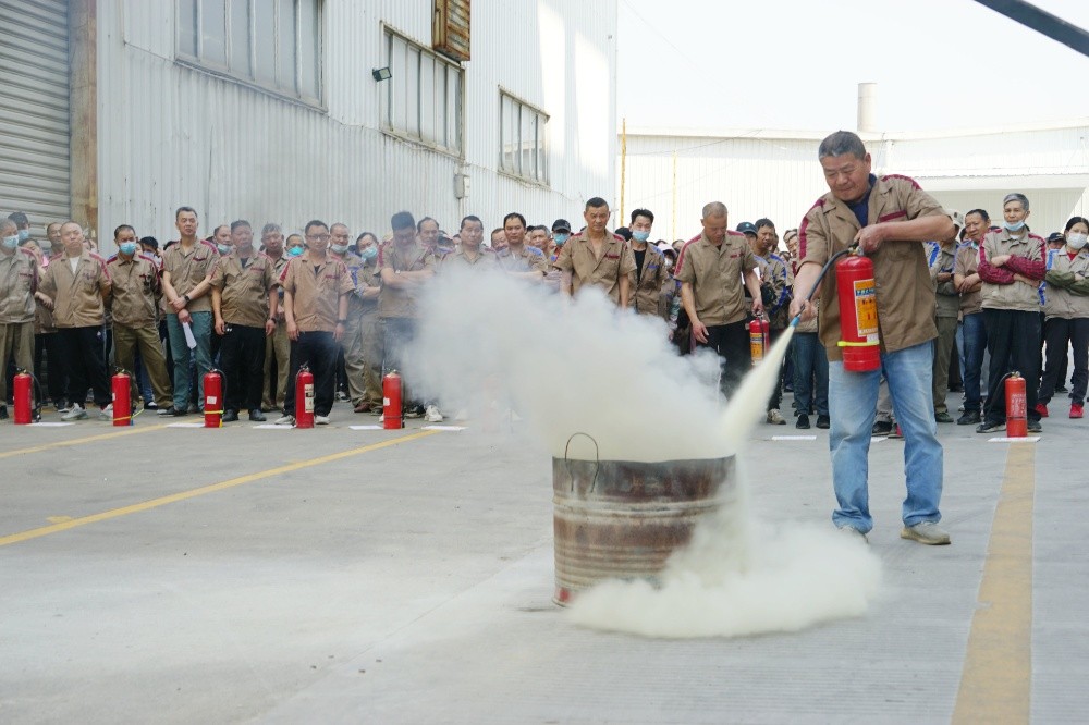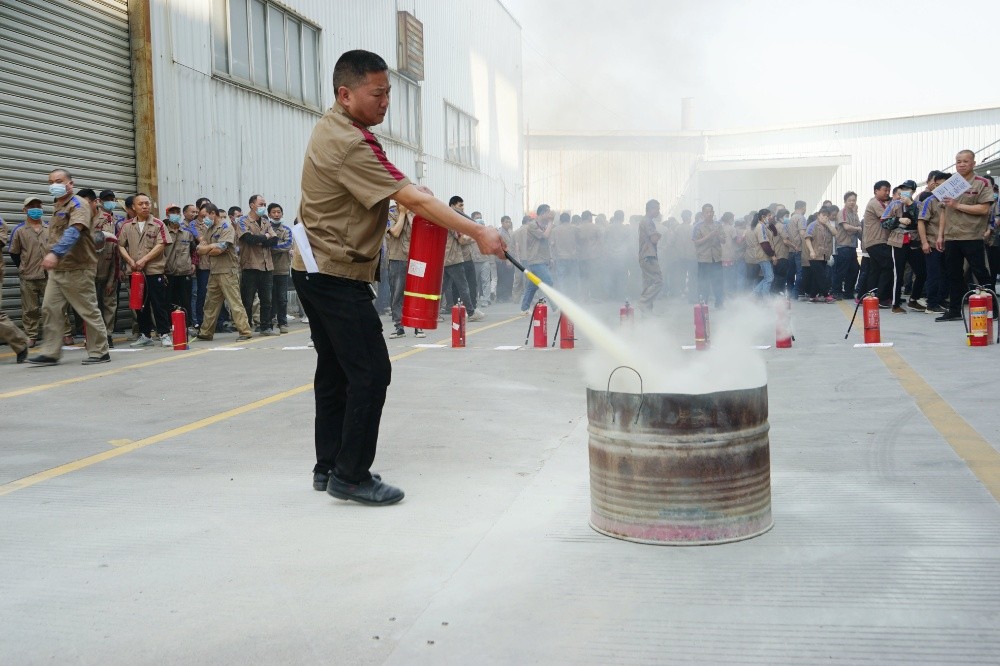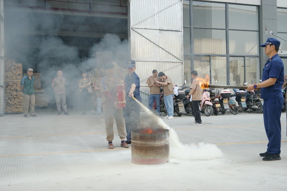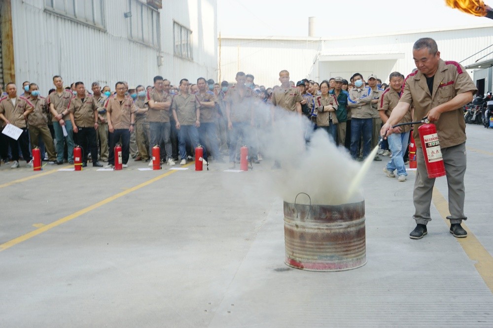首先由車間主任、班組長等進行操作示范,隨后由新員工們輪流使用滅火器訓練,對不當操作進行現場糾正,力求使公司每位員工都能熟練掌握滅火技能。