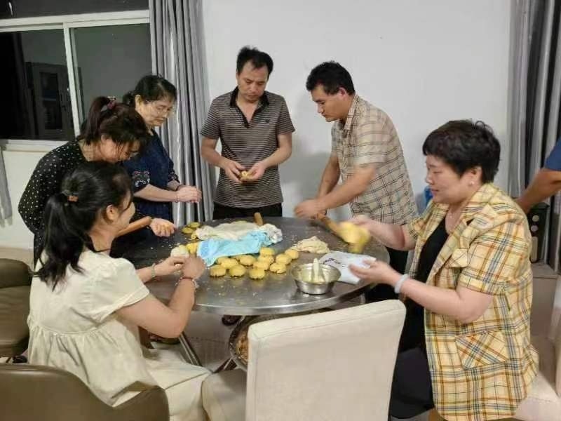活動現場,大家熱情高漲,紛紛化身月餅師傅,熟練地揉面、加酥、調餡、壓制,分工明確,各展才藝,將對家人的相思揉進了月餅里。在一片片歡聲笑語中,一個個寓意團圓、美滿的月餅陸續成型。