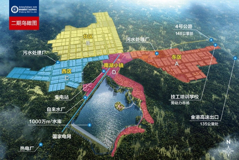 特區二期規劃面積達1041 公頃,2023年8月正式啟動建設。特區地理位置優越,交通高效便捷。特區原地形屬于丘陵地帶,地勢高,起伏大,向首都供電的國家電力電網從特區上空穿越,根據此地形地勢特點,特區規劃為東區、北區、西區、南湖小鎮四大分區,實現環境、體量、規劃、功能、配套五項提升,全部建成后入駐企業預計達300多家,帶動當地8萬多個就業崗位,致力于打造集生產、生活、生態為一體的特色工業小鎮典范。