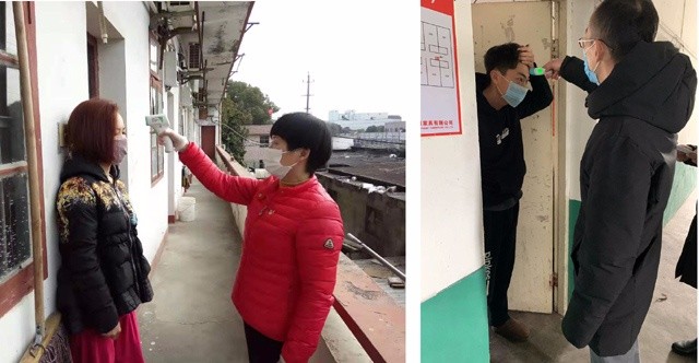 沈玉琪是家值支部的一名黨員,從1月30日起,他又多了一個身份——海洲街道海洲社區錦繡花園小區志愿者,主要協助小區門口封閉式管理的日常工作,包括量體溫、發放臨時通行證等,每天忙碌而有序地“工作”著。這幾天,象他那樣,公司內還有很多主動認領各自村(社區)站崗開展志愿服務的黨員或普通職工,如森德支部黨員莊佳華1月30日開始參與小區自發組織的防控志愿服務活動;全國五四獎章獲得者、黨員唐志海主動到村里要求執勤,協助村(社區)開展道路卡點檢查、人員登記、測量體溫等疫情管控工作;卡雷諾入黨積極分子朱玉良,2月1日積極報名參加了華豐小區主要出入口的人員出入檢查、宣傳、巡邏等工作……他們以自身的實際行動踐行著一個共產黨人的初心使命,以對人民群眾負責的精神日夜輪番值守做好疫情防控工作,積極而認真地發揮著一個共產黨員的先鋒模范作用。