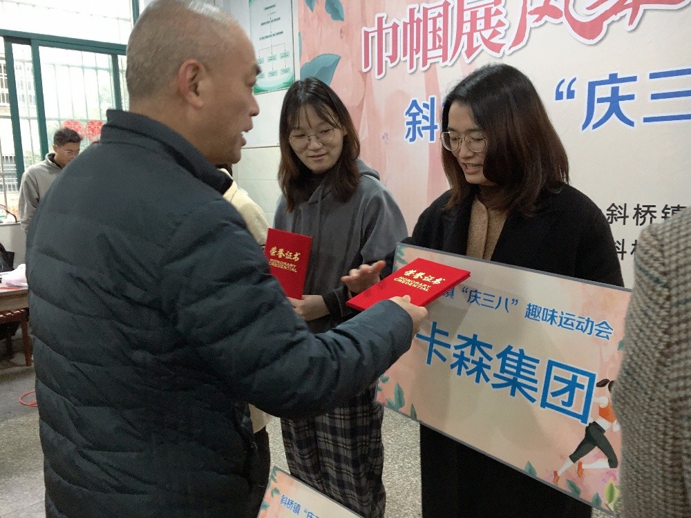 3月5日下午,2021年斜橋鎮(zhèn)“巾幗展風(fēng)采 運(yùn)動(dòng)促健康”“慶三八”趣味運(yùn)動(dòng)會(huì)在慶云村文化活動(dòng)中心舉行。根據(jù)鎮(zhèn)婦聯(lián)的要求和公司婦聯(lián)的安排,我司由沈晨亞、朱曉華、周燕、張娟琴4人組隊(duì)出征。